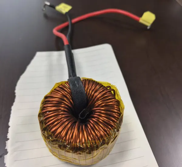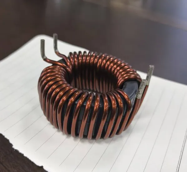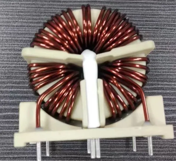 -Конструкция: Тороидальный магнитопровод с плотной намоткой медного провода. Оснащен съёмным штыревым основанием для удобной пайки на печатную плату (PCB).