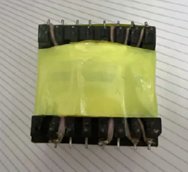 2. Технология и особенности: В процессе производства применяется вакуумная пропитка с последующим отверждением в печи. В месте соединения магнитопровода и каркаса обычно наносится фиксирующий клей. В некоторых изделиях пространство между корпусом и магнитопроводом заполняется мягким компаундом. Это позволяет не только соответствовать требованиям по электрической прочности и изоляции, но и предотвращает падение индуктивности из-за расширения после заливки основного компаунда. Обмотки обычно выполняются из чистой медной проволоки. Для повышения стабильности во вторичных обмотках некоторых моделей может применяться технология параллельной намотки двумя проводами.